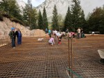 Betoniranje temeljne plošče se sliši kot ogromen zalogaj in ko se prostovoljci zbiramo na gradbišču, verjetno z očmi vsi ocenjujoče merimo velikost 'zafršolane' površine. Na eni strani, kjer se bo betoniranje začelo, je že vse pripravljeno, na drugi armatura še ni povsem položena, tako da bo to še potrebno postoriti. Na obeh straneh gradbišča kraljujeta dva velika kupa peska in po nekaj začetnih pripravah se trije veliki industrijski mešalci ob njihovih vznožjih oglasijo, voda steče, ekipa prime v roke vedra, lopate in vreče cementa. Mešanje betona se začne. Kmalu se po armaturi zapelje prva samokolnica in strese beton v vogal, ki je najbližji žičnici. Delo poteka sprva počasi in s prekinitvami, saj ima predvsem največji od mešalcev nekaj tehničnih težav. Na srečo začetek ne določa celotnega dne, saj po kakšni uri vse gladko steče in količina betona na plošči se nato ves preostanek dneva z zanesljivim tempom veča.