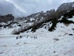 Vsi zbrani smo se podali v smer Savinjskega sedla, v iskanje primernega prostora, kjer bi bilo dovolj snega. Razporedili smo se v skupine in šli veselo na delo. Na različnih točkah so nas že čakali inštruktorji. Opravili smo prerez snežne odeje in preizkus trdnosti, gibanje naveze v snežnih razmerah, opravili spust na dveh cepinih, pokazali uporabo derez in cepina ter zaustavljanje s cepinom, izdelali smo snežni krožnik ter na njem izvedli spust, pripravili smo ledeniško navezo in prikazali reševanje iz ledeniške razpoke, za češnjico na vrhu torte pa smo opravili še iskanje zasutega v snežnem plazu (na srečo samo zasuto vrečko) s pomočjo lavinskega trojčka. Med izvajanjem nas je ves čas obiskoval sonček in poskrbel, da nam je bilo vroče in da nam je mokri sneg odlično močil oblačila.