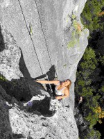 V soboto zjutraj smo obiskale plezališče Dvigrad, kjer smo na ploščah trenirale zaupanje v plezalnike in postavljanje nog. Razen bližnjega srečanja s kačo – ki se je dobro končal za obe udeleženki, kačo in letošnjo organizatorko Ireno – je dan minil v nabiranju smeri in klepetu. Zvečer se nam je pridružila še enajsta članica, ki je z dodatnim prostorom v avtomobilu in prtljažniku naslednji dan olajšala pot do plezališča in domov.